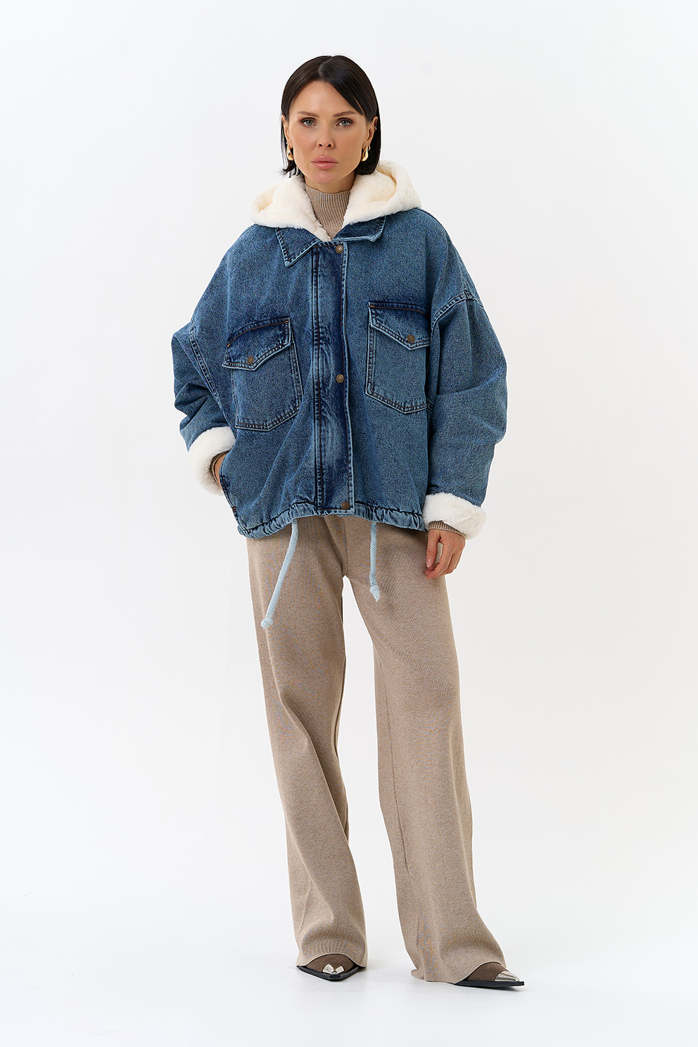 Крой воротника - съемный капюшон, отделка эко мех