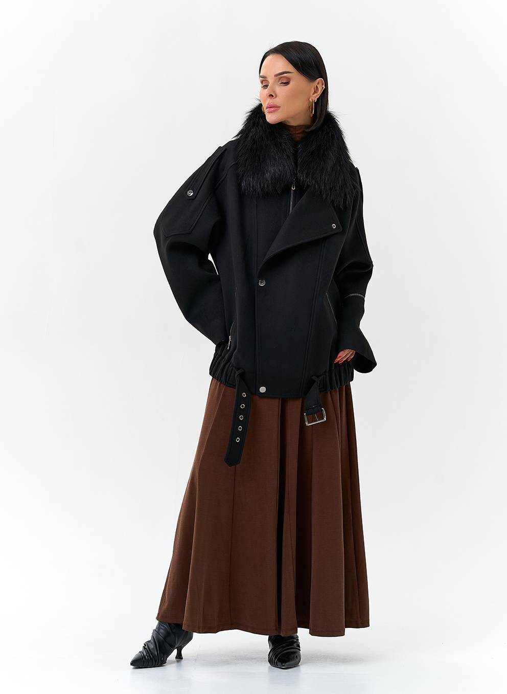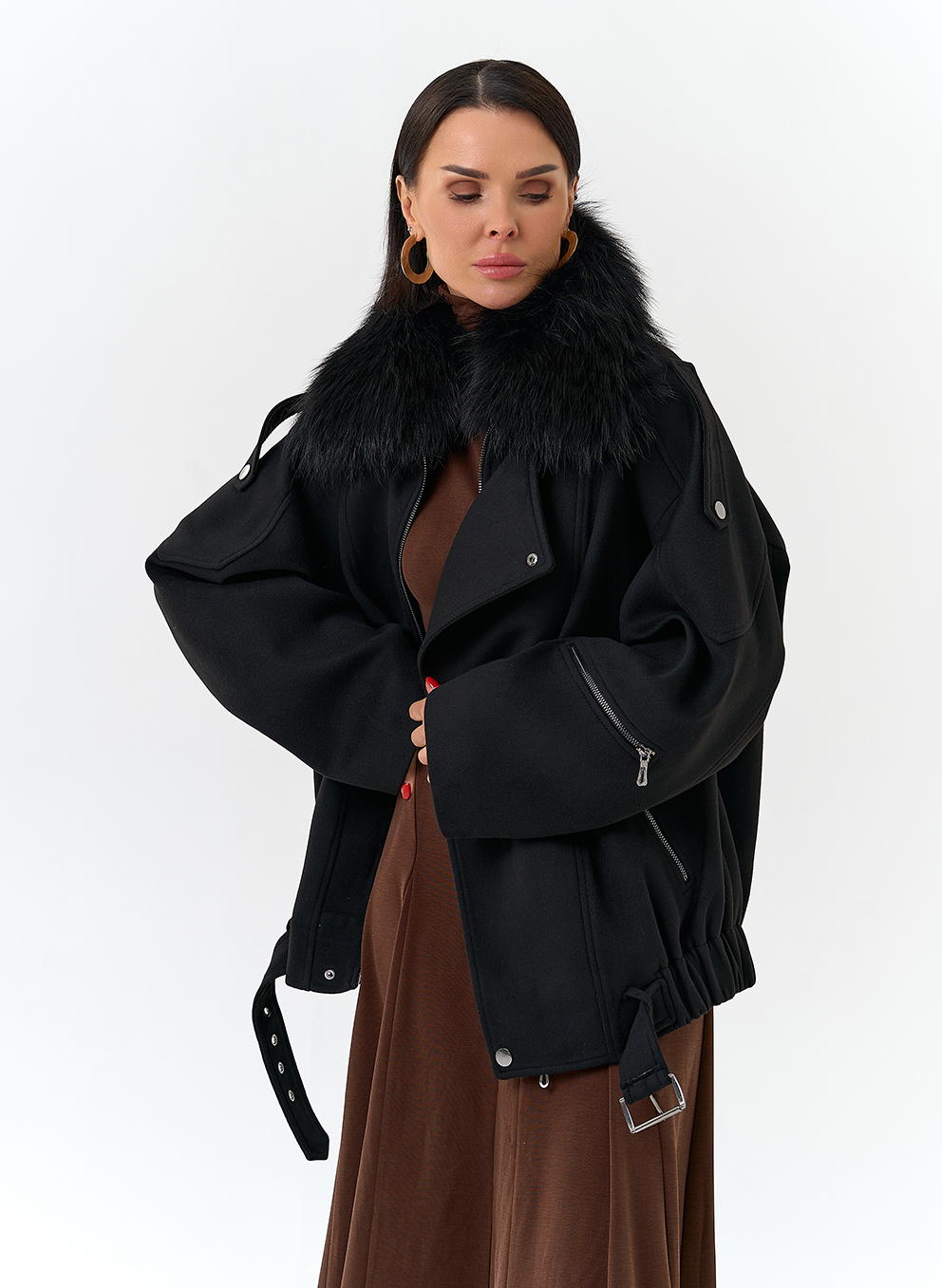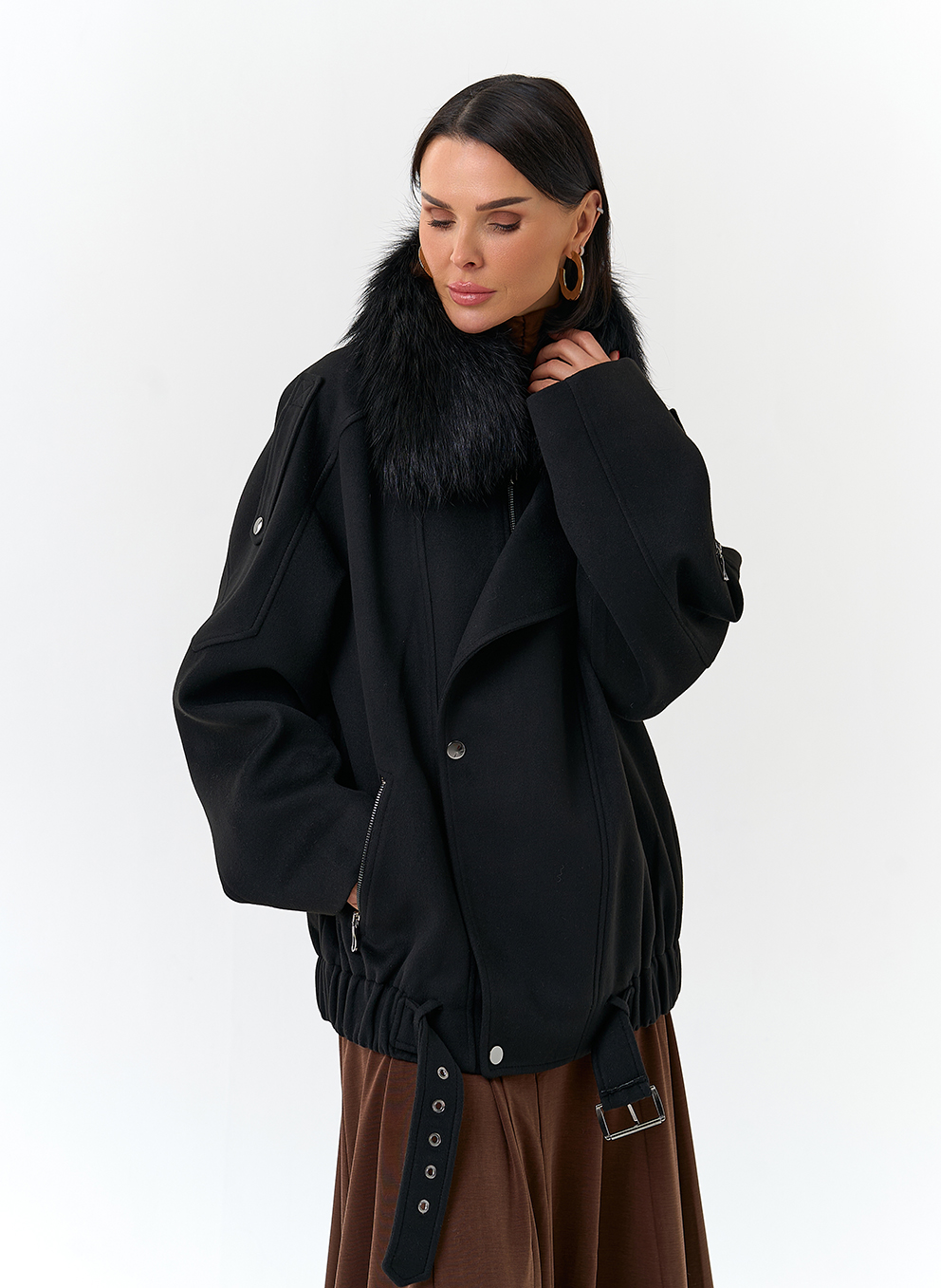 Отделка воротника - съемный мех лисы, цвет черный