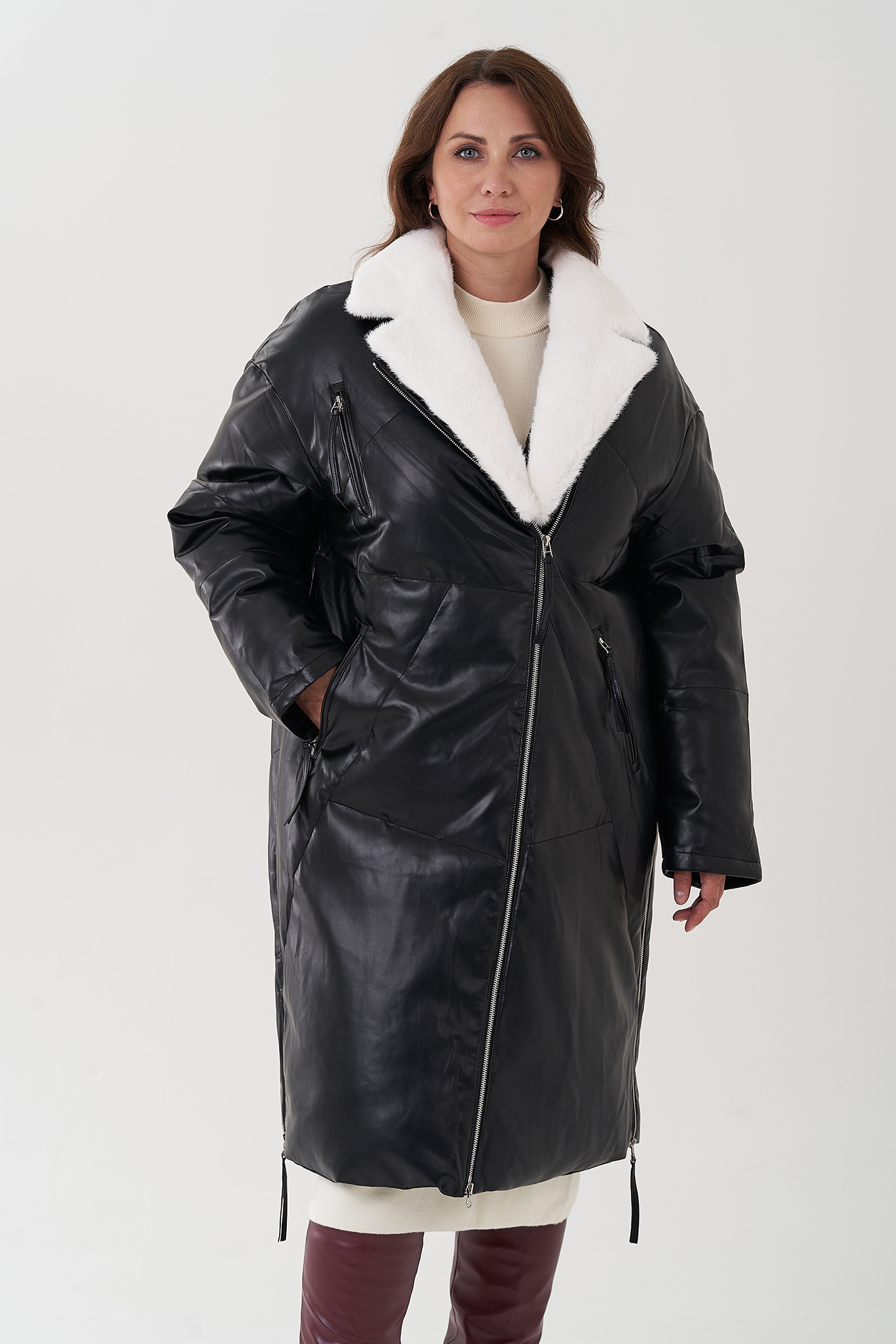 Отделка воротника - искусственный мех, белый
